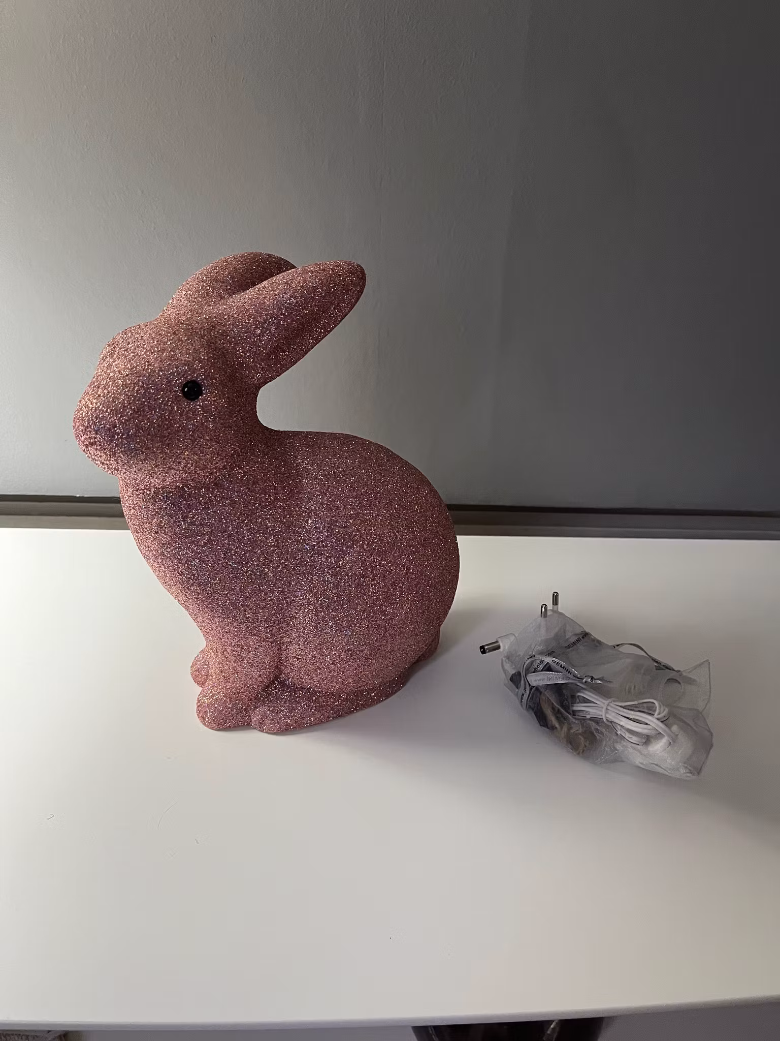 Underbar nattlampa i form av en kanin med glitterPäronlampa ingår ej