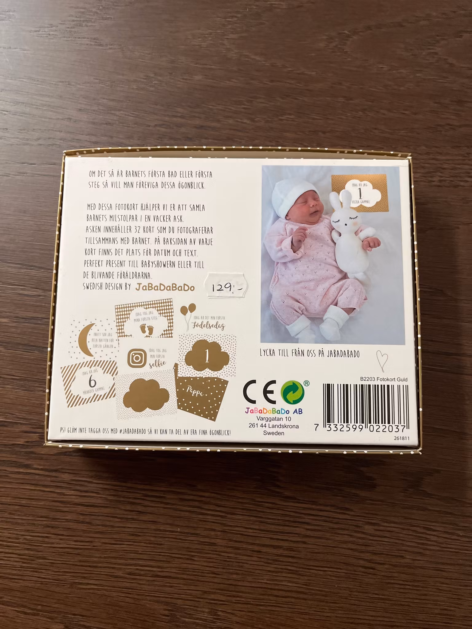 32 st kort som fotograferas tillsammans med barnet för att föreviga deras tid